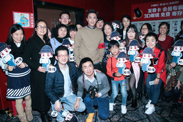 粉丝为杜淳绘“车夫”卡通形象 与人形立牌合影