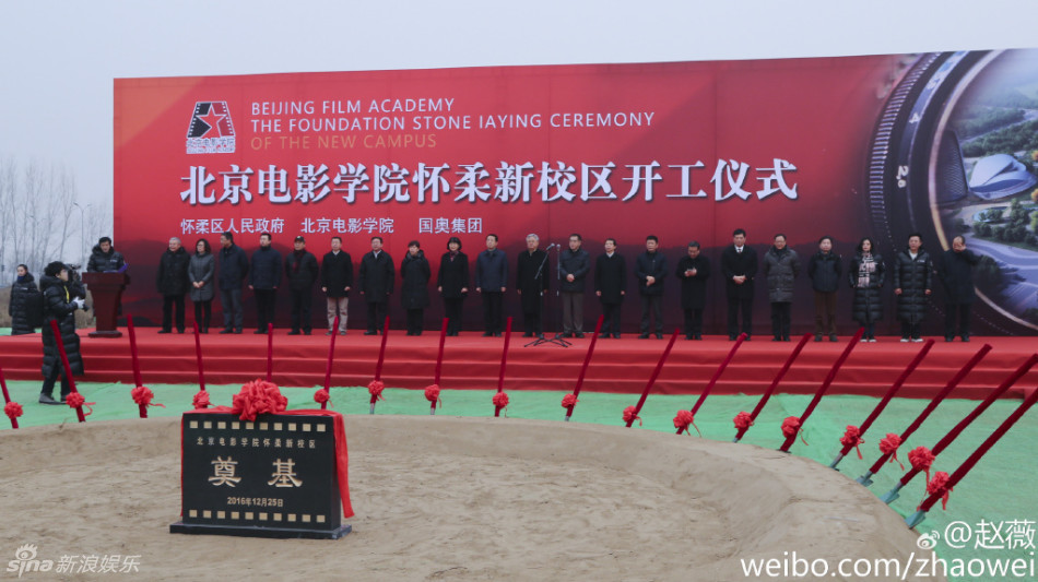 12月25日,北京电影学院怀柔新校区开工仪式举行。赵薇、黄渤作为资深校友现身奠基仪式,穿羽绒服铲土。赵薇赞“地杰人灵之地!”