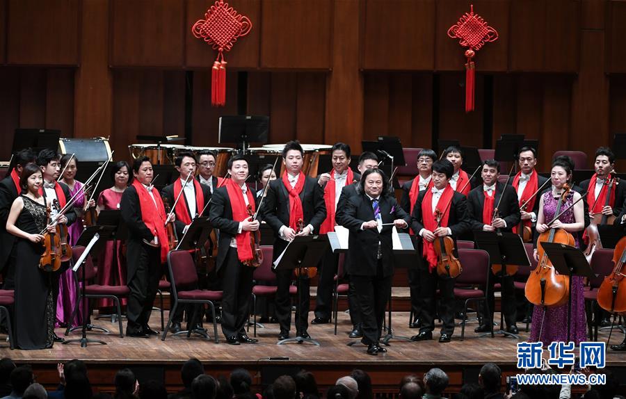 2月6日,在美国首都华盛顿,世界著名指挥家汤沐海携手北京交响乐团上演中国新年音乐会。当晚,中国新年音乐会在华盛顿肯尼迪艺术中心举办。世界著名指挥家汤沐海携手北京交响乐团,共同为观众们奉献了一场精彩的演出。新华社记者鲍丹丹摄