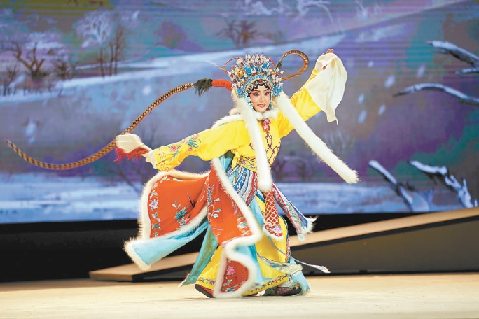 虽然以传统戏为主,但是可以看出来这部戏力图呈现四大美人与众不同的一面。风雷京剧团团长松岩表示,他们希望不再是简单地平面化呈现四大美人的外貌之美,而是要彰显她们的精神之美,“从我个人情感来讲,王昭君不只是一个简单的美人,更是一个伟大的使者。”在舞台呈现上,虽然有仪仗队前来送行,但仪仗队待在角落,王昭君则独自站在风雪中,“她心里凄凉,但又怀着为祖国、为和平奉献力量的热情。”松岩说,他希望通过京剧表演和音乐、多媒体手段的结合,让观众不仅能够欣赏京剧的唱念做打,还能感受到传统京剧舞台上感受不到的真情实景的氛围。