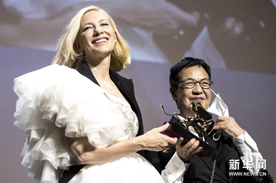 主竞赛评委会主席凯特·布兰切特为许鞍华颁奖。(图片来源:视觉中国)