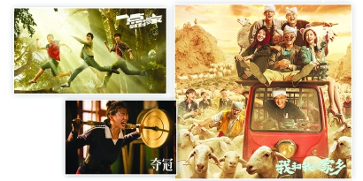 家乡无疑是国庆档最重要的票房催化剂,一个“乡”字凝结了中国人的情感认同。图为《一点就到家》《夺冠》《我和我的家乡》海报。 制图:冯晓瑜