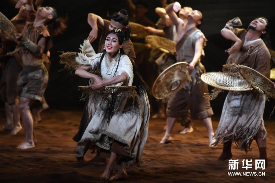 11月14日晚,演员在兰州市黄河剧院表演舞剧《问道崆峒》。新华社记者 陈斌 摄