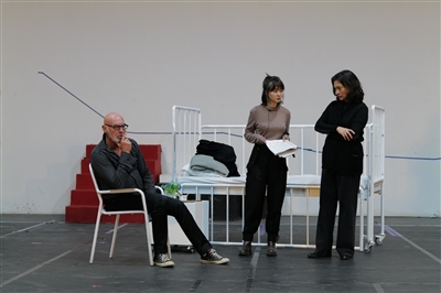 在排练过程中,埃里克尽可能地给演员们留出他们自己的创作空间。“大多数情况下,演员需要在导演引领下寻找与创造出新角色,但我想看到演员自身强大的生命力与创造力,为此我必须给他们很大的创作自由度。当然,在未来的二十天里,我会非常细致精确地调整很多地方,那时他们就必须得尊重我的创作方式,不管是整体空间、表演节奏,还是具有舞蹈性质的动作,这两部作品都将在首演之前完成焕然一新的转变。”