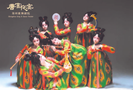 《唐宫夜宴》“复活”唐俑,以舞蹈再现大唐风华。这支5分钟的舞蹈展示了唐朝少女从准备、整理妆容到夜宴演奏的全过程,14名参加夜宴的少女边嬉笑打闹,边梳妆打扮,舞台上光影流转,如同在古画中翩翩起舞;当场景切换到正式的宫廷表演时,她们的舞姿又不失大气恢宏,一颦一笑、举手投足间尽显盛唐时期的文化风情。