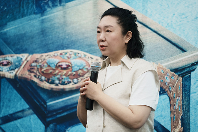 谈到话剧《搭手飞人》,她称这部作品是中国国家话剧院守中华传统文化之正,创意时代表达之新的作品。“从剧中的侠义精神、武林规矩来谈中华民族道德层面上的精神和智慧,重情重义、守正守信、独立自强。通过这部剧,看懂中国人,做人行事的人文特质和自觉意识,这种自觉,是高妙的智慧,是古老大国‘天人合一’的高维思想,庚续下来的‘中国自觉’。这部剧讲述武林故事,也探讨中国精神。期待在浩峰导演、吕波导演的舞台构想中,让观众沉浸武林,认知中国。”