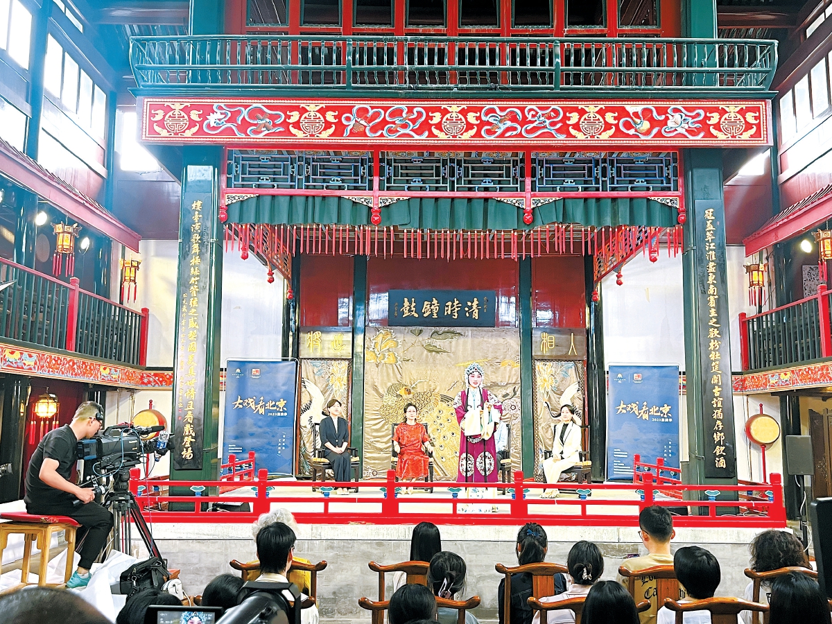 “大戏看北京”二○二三展演季“戏剧沙龙”活动中,戏曲院团负责人、戏曲名角和青年学生共聚一堂进行互动交流。