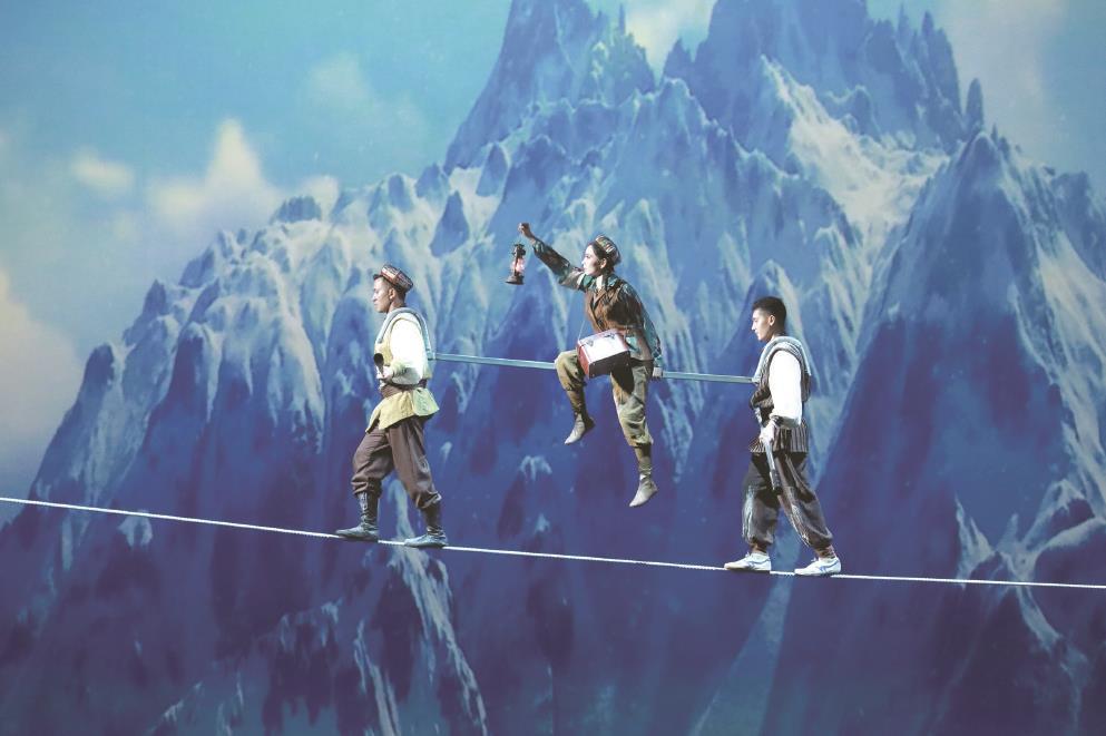 “杂技剧是杂技艺术发展非常重要的一个平台,我们力求将人物的命运感更深切地融入杂技中。”昨前两晚,历时三年打磨的杂技剧《天山雪》在上音歌剧院正式首演,这是海派杂技剧时隔四年后再次亮相中国上海国际艺术节。《天山雪》以“逆风飞翔”的“雄鹰精神”作为主旨,以杂技人的故事贯穿始终,串联起70年来新疆各族人民共同建设新疆、发展新疆的壮美历程,用杂技艺术语汇立体讲述各族人民携手奋进的故事。