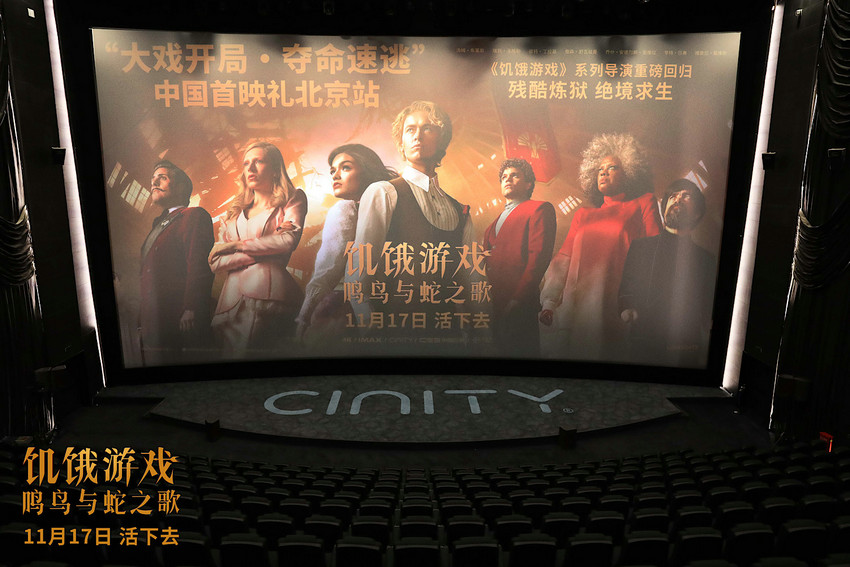 电影《饥饿游戏:鸣鸟与蛇之歌》于11月14日举办“大戏开局·夺命速逃”中国首映礼,分别在北京与南京两地与影迷朋友们提前见面,现场不仅有“奇迹战歌”循环播放,带人一秒入戏;更有主演汤姆·布莱斯和导演弗朗西斯·劳伦斯二人的问候视频播出,影片将于11月17日以4K/IMAX/CINITY/CGS中国巨幕/4DX/DTSX版本全球同步上映。