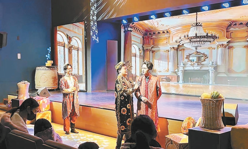 “小朋友们,我们把金币种在哪里了?”舞台上,“阿凡提”一挥手,小观众们齐声应和,跟随他和小毛驴在剧场里开启了热火朝天的寻宝之旅。多年来,幽默机智的阿凡提是几代小朋友心中的英雄,日前,他走出故事,来到通州台湖演艺小镇北投演艺酒店的剧场里。
