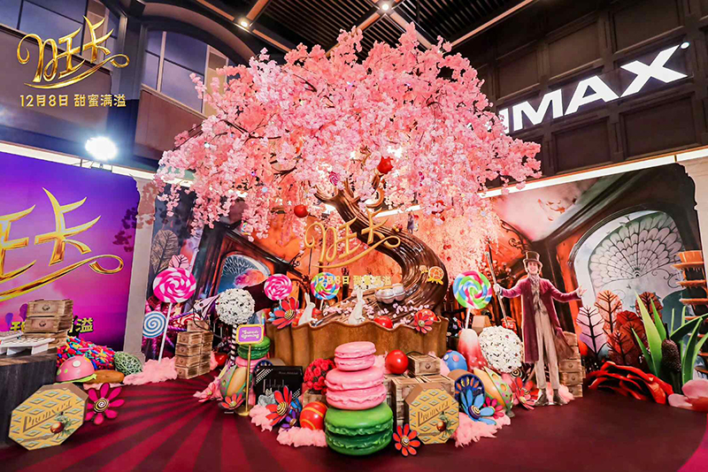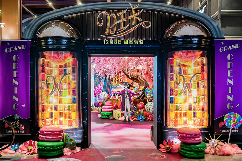 《旺卡》首映礼现场的设计独具巧思,直接将电影中的旺卡巧克力店“搬到”影城。观众手持旺卡巧克力店“开业”邀请函,穿过大门,就步入旺卡巧克力店,正式开启缤纷奇趣的童话世界,令人一秒忘记所有烦恼。