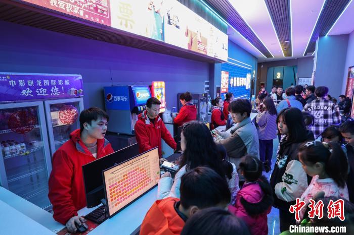 图为贵州务川一家电影院,观影者在购票、购买零食。中新网记者 瞿宏伦 摄