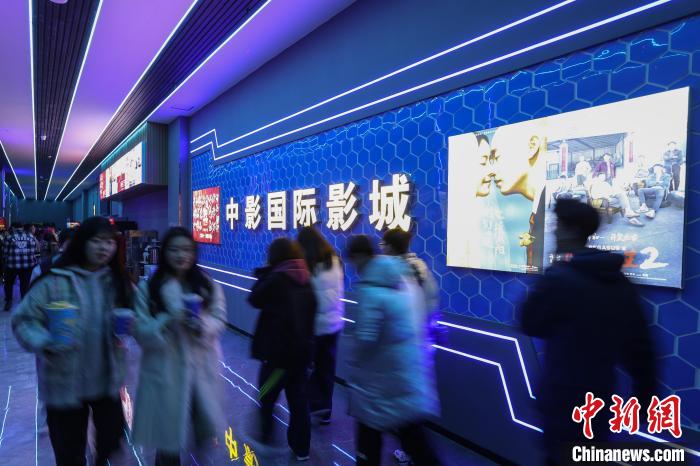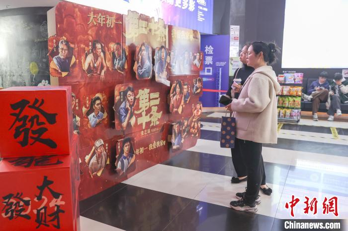 图为江西赣州一电影院摆放的春节档相关电影宣传物料吸引民众观看。刘力鑫 摄