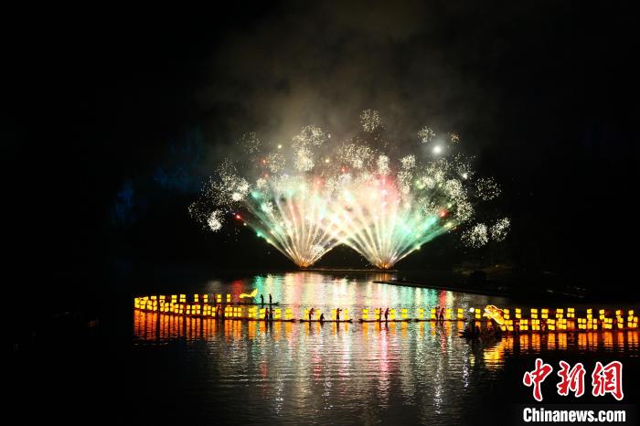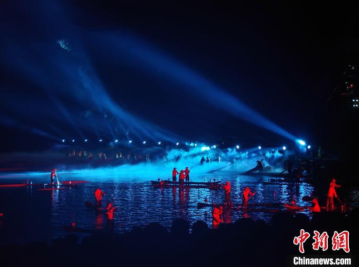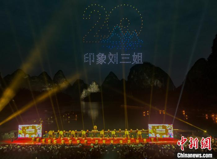 中新网桂林3月21日电(周利朔 蒋丰慧)3月20日晚,广西桂林山水实景演出《印象·刘三姐》欢庆公演20周年,总导演王潮歌等艺术家与政商文旅界人士齐聚庆典现场,与中外游客共襄盛举。