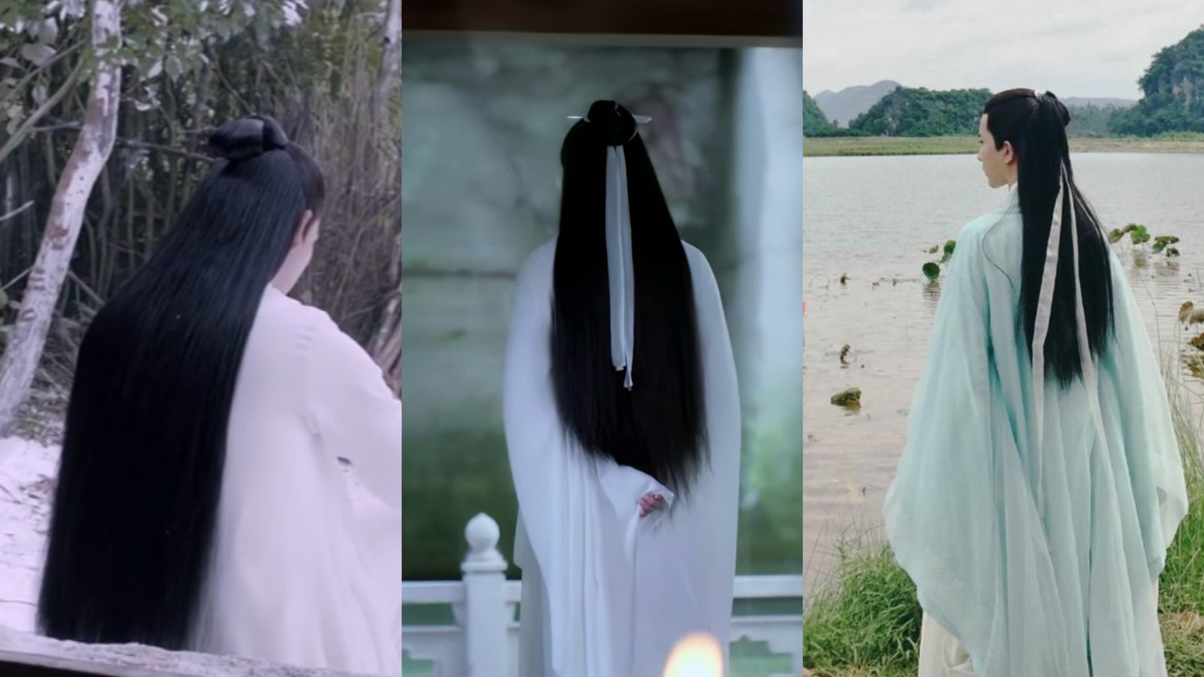 在古装剧《烈火如歌》《天雷一部之春花秋月》《三生三世十里桃花》里,男演员的造型从背后看如出一辙。