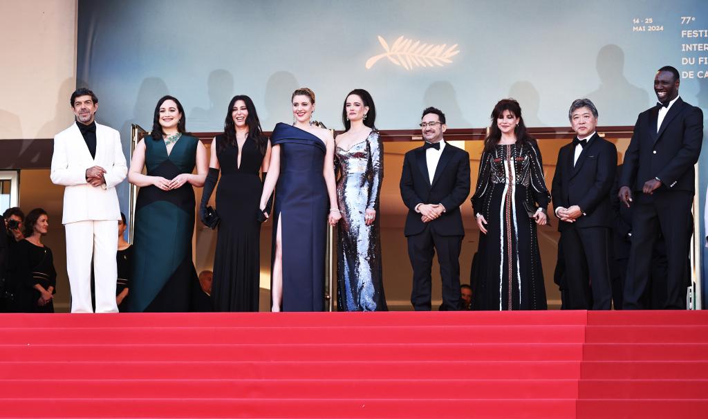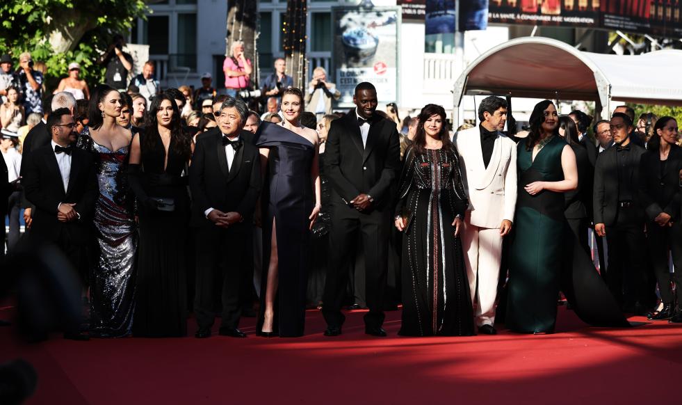 5月25日,在法国南部城市戛纳举行的第77届戛纳电影节上,主竞赛单元评委抵达闭幕式红毯。新华社记者 高静 摄