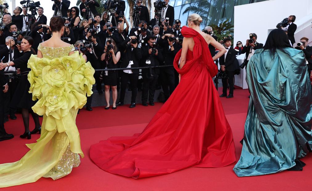 5月25日,在法国南部城市戛纳举行的第77届戛纳电影节上,嘉宾抵达闭幕式红毯。新华社记者 高静 摄