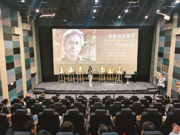 走进电影博物馆的艺术影厅,可以看到大银幕前放置了六幅油画肖像,分别是贺绿汀、黄准、吕其明、陈传熙、汤沐海等与电影音乐创作密不可分的作曲家——这些肖像正出自贺寿昌之手。今年82岁的金复载自25岁起从上海音乐学院毕业之后,就进入动画片和电影配乐领域。而他退休后,还一脚踏入了如今十分兴盛的音乐剧,成为上海音乐学院音乐剧系的首任系主任。因此,他的音乐生涯,始终是“时代旋律”。他见证了广受大众喜爱的电影、动画、音乐剧音乐的发展历程。现场播放了央视为他拍摄的纪录片,画面上呈现了他的代表作——电影《红河谷》、动画片《哪吒闹海》《三个和尚》《雪孩子》,还有电视剧《济公》里的“鞋儿破、帽儿破……”让现场不同年龄的观众都回忆起各自的美好童年……