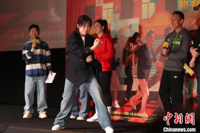 《热辣滚烫》的主创团队与观众合影。中新网记者 张亨伟 摄