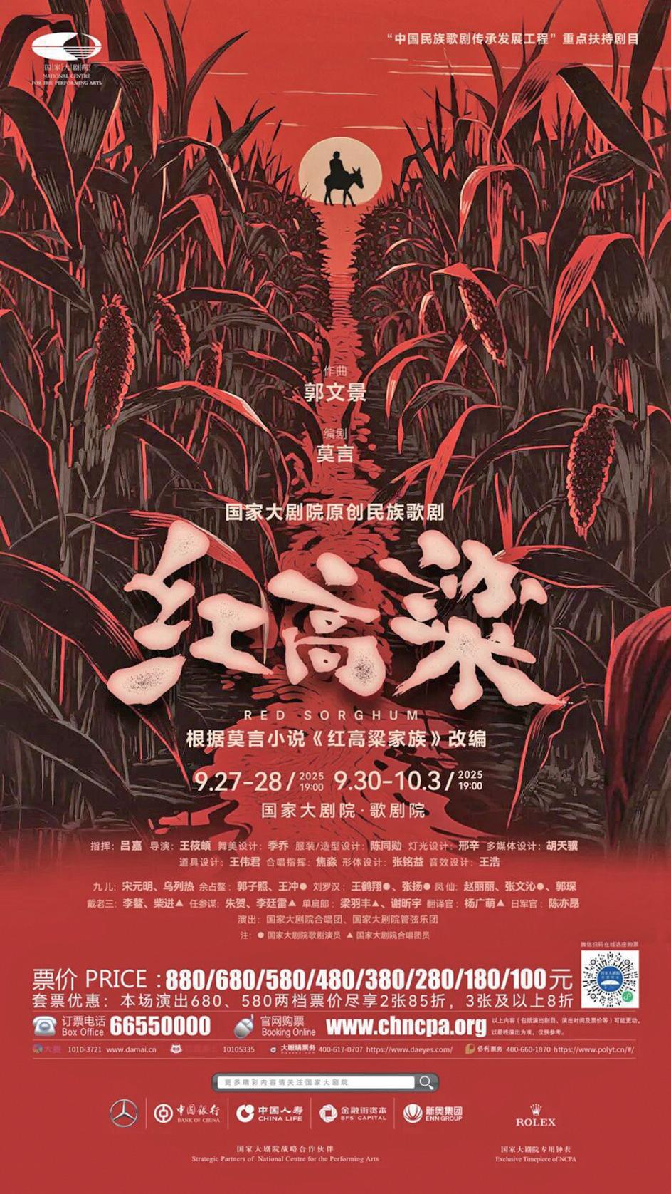 为大力弘扬英雄主义、爱国主义,在2025年纪念中国人民抗日战争暨世界反法西斯战争胜利80周年之际,国家大剧院隆重推出原创民族歌剧《红高粱》,即将于9月27日至10月3日迎来世界首演。作为国家大剧院创作推出的第23部原创歌剧,该剧以文学经典的全新舞台呈现,歌颂永恒炽热的民族精神。