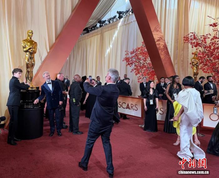 当地时间3月15日,第98届奥斯卡奖颁奖典礼在美国好莱坞杜比剧院举行。图为嘉宾走红毯并与奥斯卡金像合影。 中新社记者 张朔 摄