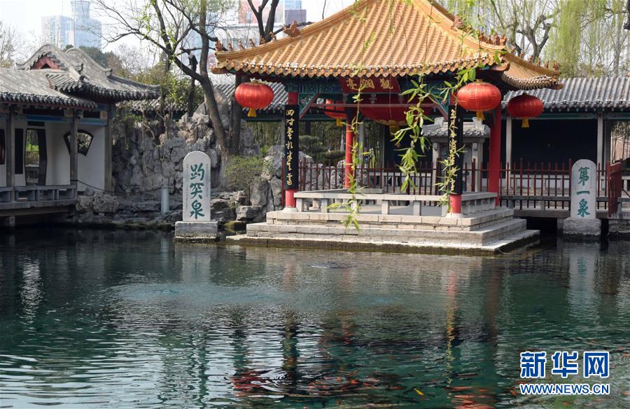 3月22日,济南趵突泉水位跌破红色警戒线,喷涌乏力。当日,济南趵突泉实时水位降至27.59米,跌破27.60米的红色警戒线,面临停喷危险。趵突泉水位走低的主要原因是春季干旱及春灌的影响。新华社记者 徐速绘 摄