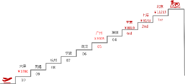 受多重因素影响,2017年春节期间的出境游线路价格较往年有一定幅度的上涨,个别热门线路的报价较平日上浮了1倍以上,从而一定程度上推高了出境游者用于购买旅游产品(旅游团、自助游套餐等)的人均开支。《报告》数据显示,2017年春节出境游人群用于购买旅游产品的支出平均为8721元/人,同比有1倍多的增长。主要客源城市出境游人均支出排名方面,北京以11213元/人的人均支出位居榜首,也是唯一支出过万元的城市。南京以8819元/人跻身前三名,超过了深圳和广州两个热门一线城市。