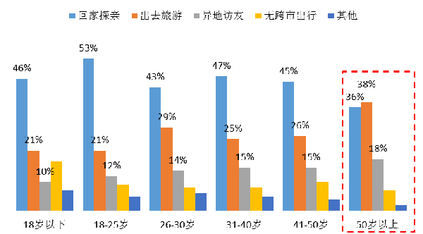 上述春节出行动机调查数据还显示,50岁以上的中老年群体较其他年龄段的受访者更加偏好旅游过年,旅游是他们春节期间长途出行的第一动机,“回家探亲”则是第二位的出行动机。