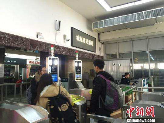 图为长沙火车站内乘客通过“票证人自助核验闸机”“刷脸”进站。(鲁毅 摄)