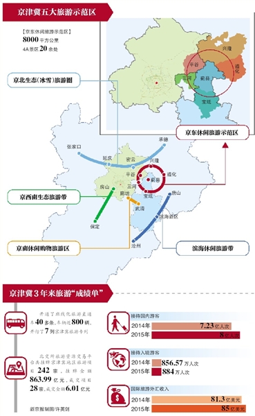 早在2014年4月,京津冀旅游协同发展就已优先“破题”,三地在市场推广、监管合作等方面以任务分解方式逐渐推进旅游大格局建设。旅游示范区是依托京津冀旅游协同发展战略布局先行先试的新形式,近三年来,京津冀三地的旅游示范区建设正加快步伐。