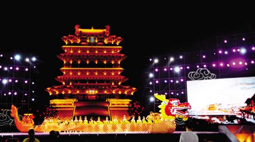 竞演最后,一条巨龙腾空而起,象征着我市文化旅游产业像一条腾飞的巨龙,抬龙头、挺龙胸、舞龙身、活龙水。