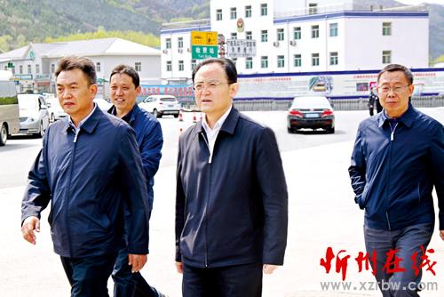 市委书记李俊明在五保高速公路五台山景区出口调研建筑风貌整治情况。(刘卓军 摄)