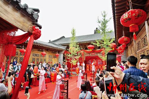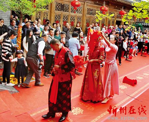 5月1日,不仅是国际劳动节,很多新人也会选择在这一天举行婚礼。忻州市民潘先生和智女士就是其中的一对。这一天,他们在传统中式婚礼仪式中迈入婚姻殿堂。古色古香的四合院,一排排大红灯笼串着喜庆,一把把七彩阳伞溢着吉祥;红彤彤的地毯铺满幸福,热腾腾的油糕粘着美满。一段红丝绸,牵着新人的手,牵着一生一世的爱情,跨火盆马鞍,拜过天地高堂,夫妻对拜,揭开红盖头,点上红喜烛,再喝一杯交杯酒……讲究、喜庆的传统中式婚礼环节让两位新人和到场宾客感受到了中国传统文化的魅力。 传统婚礼是中国文化精粹之一,婚礼习俗也源于中国几千年的历史文化积累,孝敬、祝福、吉祥更是成为中式婚礼上的主题,几乎婚礼的每一项礼仪都渗透着中国人婚礼习俗的哲学思想。后来随着时代发展,中式婚礼渐渐退出了人们的视线。很长一段时间无论在乡村,还是城市,大家推崇的都是西式婚礼,新娘乘坐的工具也由原来的花轿换成汽车,婚车也从最初的普通小轿车到现在超长的凯迪拉克或宾利等高档车。每当节假日,我们时常会见到十几辆结婚用的小轿车,浩浩荡荡,鱼贯而行地驶过,场景甚至比上世纪60年代的国宾车队还威风、气派。现如今,越来越多的新人选择中式婚礼,是传统婚礼文化的一种回归。