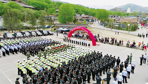 为了擦亮佛教圣地五台山这个旅游窗口,打造形象五台山,忻州市公安局部署从今年5月1日起至10月31日,在五台山风景区开展流动人口暨治安秩序大整治(即两项整治)工作,从秩序安全、流动人口管理、治安、交通和消防等5大类33个层面对五台山风景区进行集中整治。时值“两项整治”进入高潮之际,五台山迎来了“5.19”中国旅游日,忻州市公安局党委将此次“5.19”治安工作作为“两项整治”的第一次大考,当作首次检验整治机制、设施、效果和队伍的绝佳机会。为此,市公安局从市局、五台山风景区、五台县、繁峙县、原平市、代县等地和武警、消防、保安公司抽调精干警力和安保人员组成执勤队伍。18日下午,市公安局在五台山景区举行战前动员会。动员指出:省、市党委政府高度重视五台山工作,忻州公安要提高政治站位抓安保;“5.19”安保是对全市公安机关战斗力的一次综合检验,是十九大前的一次安保实兵演练,要坚定必胜信心抓安保;此次安保意义重大,要发现差距,总结经验,固化机制,为五台山形成安全稳定畅通有序的长效安保机制打下基础。