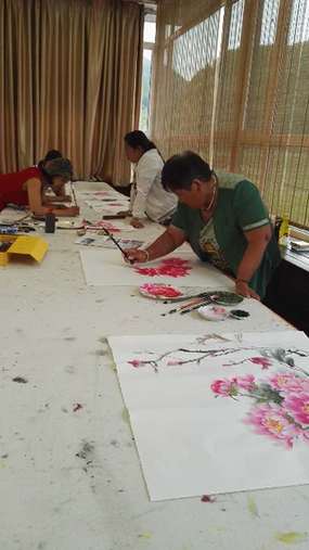 韩家村村民现场学画牡丹