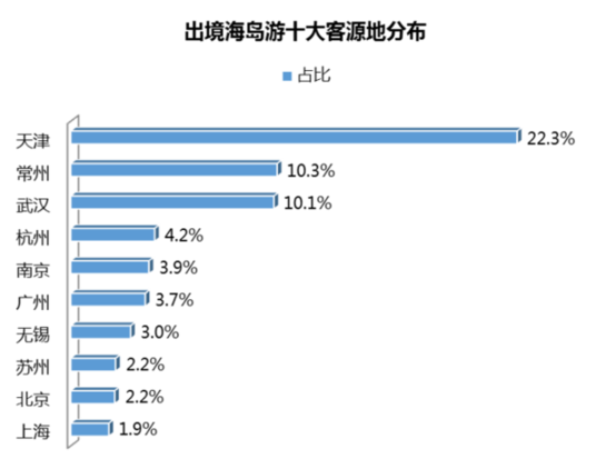 出境海岛游客源集中在一线、二线城市,国内海岛游客源相对分散