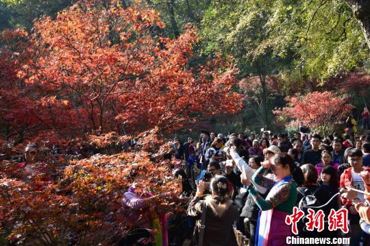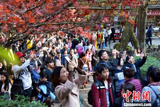 枫树林下聚集大批游客拍照留念。 卢文伟 摄