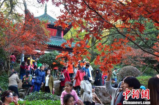11月26日,长沙岳麓山上迎来众多游客扎堆赏枫。岳麓山是全国四大赏枫胜地之一,每年的11月下旬至12月为最佳观赏期,登山可看到“漫山红遍,层林尽染”的美景。