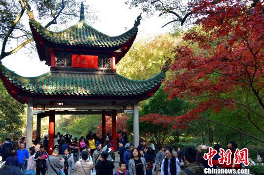 爱晚亭广场聚集了大量赏枫人群。 卢文伟 摄