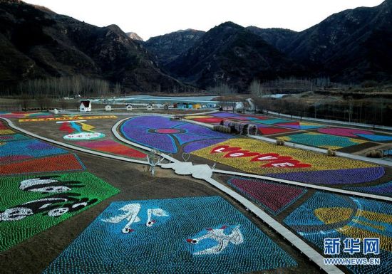 从空中俯瞰北京市密云区车道峪村用风车打造的主题景观(12月5日摄)。近日,北京市密云区车道峪村村民用约120万只风车,打造出一片占地500亩的“风车海”,包含多个主题。该景观于12月8日正式亮相。新华社记者 罗晓光 摄