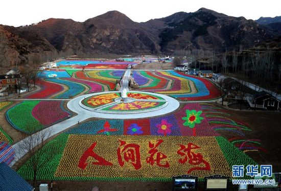 从空中俯瞰北京市密云区车道峪村用风车打造的“人间花海”主题景观(12月5日摄)。近日,北京市密云区车道峪村村民用约120万只风车,打造出一片占地500亩的“风车海”,包含多个主题。该景观于12月8日正式亮相。新华社记者 罗晓光 摄