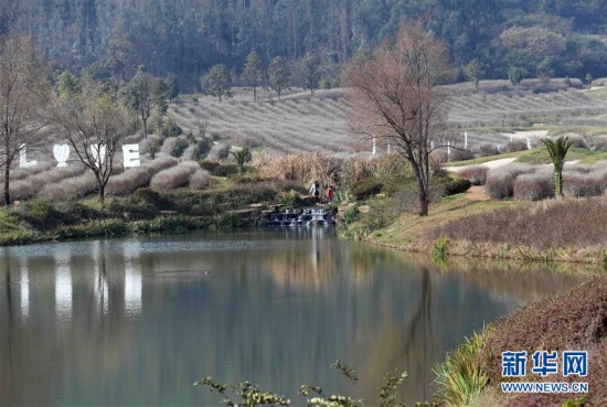 12月24日,游人在金麟湾爱情小镇游览。冬季里,依山傍水的云南省曲靖市麒麟区金麟湾爱情小镇呈现出各种迷人的色彩,吸引人们前来休闲观光度假。 新华社记者 杨宗友 摄