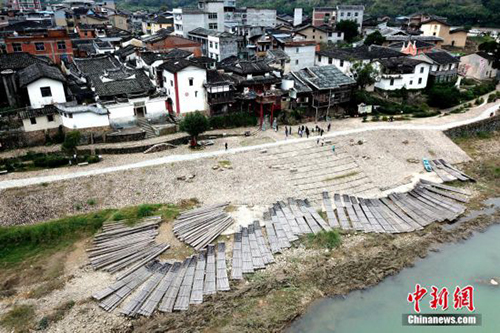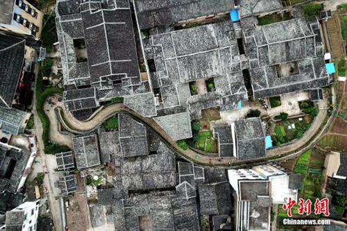 12月8日,空中鸟瞰福建千年古镇——永泰嵩口古镇,背面靠山,三面环水,风景秀丽。古镇历史可以追溯到宋朝,因地理位置优越,嵩口古镇自古就是闽中重要商埠、水陆交通枢纽,至今留存下的明清古民居多达一百二十多座。中新社记者 王东明 摄