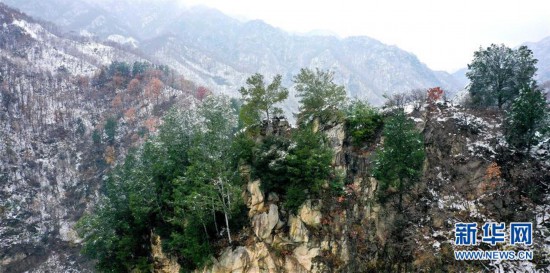 11月25日无人机拍摄的秦岭西安段沣峪口雪景。 当日,秦岭雪后初霁,重重山峦在白雪覆盖下宛若仙境。 新华社记者 刘潇 摄