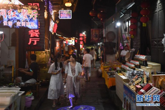 6月11日,游客在湘西土家族苗族自治州永顺县芙蓉镇景区内游览。 新华社记者 薛宇舸 摄