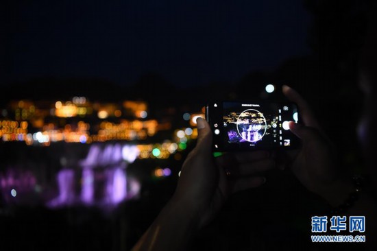 近日,湘西土家族苗族自治州永顺县芙蓉镇景区在做好疫情防控的情况下恢复开放。夜幕降临,景区内的瀑布、吊脚楼与灯光交相辉映,美不胜收,吸引许多游客前来休闲、参观。