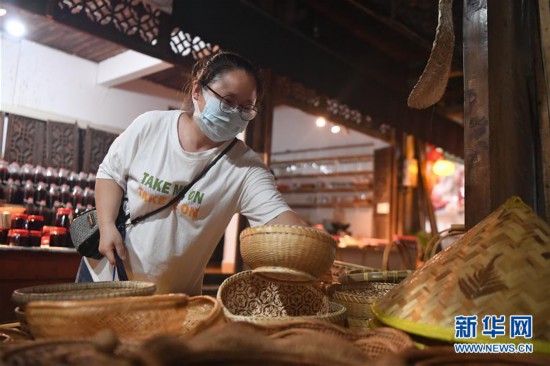 6月11日,游客在湘西土家族苗族自治州永顺县芙蓉镇景区内选购手工制作的旅游商品。 新华社记者 薛宇舸 摄