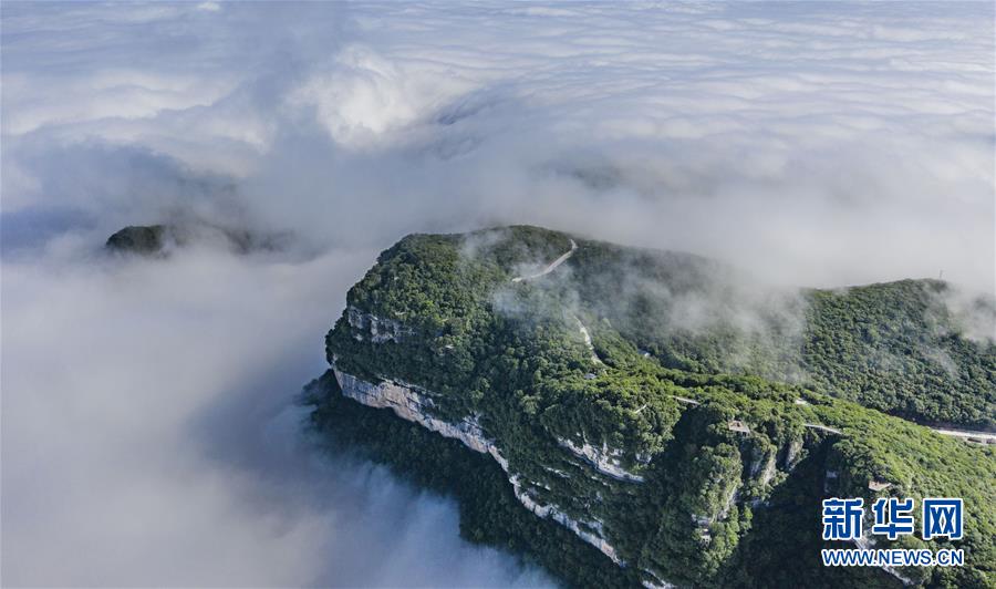6月10日拍摄的汉中市南郑区龙头山景区的云海景观(无人机照片)。 新华社记者 陶明 摄