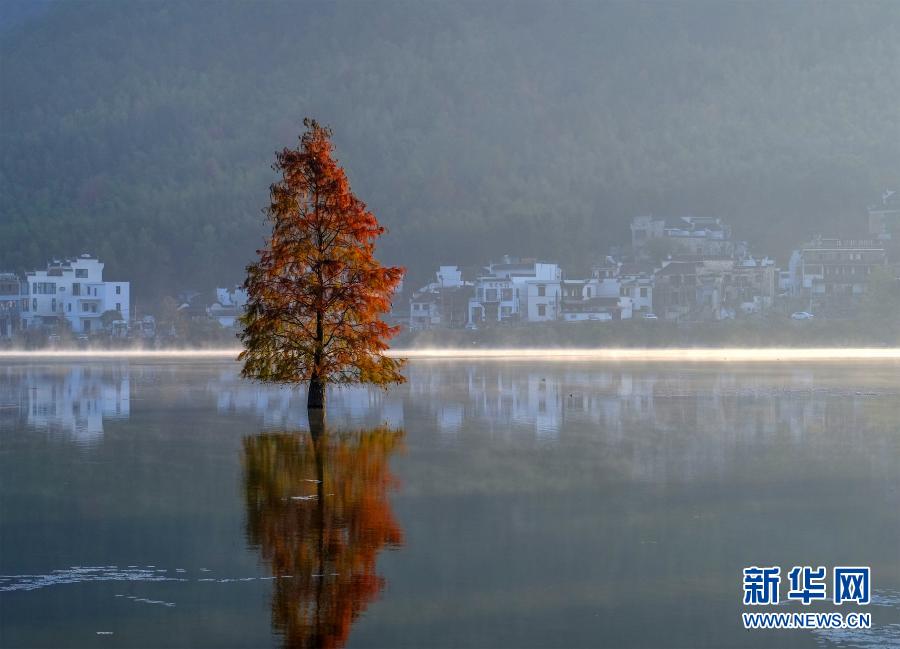 11月14日,安徽省黄山市黟县奇墅湖晨雾缥缈,美如仙境。新华社发(水从泽摄)
