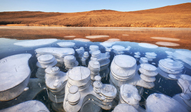 人民网讯 当地时间2020年11月25日,摄影师兼向导Stanislav Tolstnev拍摄到俄罗斯贝加尔湖“气泡冰”奇景,梦幻般的气泡,呈现了一种奇异的美丽,让人感叹大自然的神奇。这些“冰泡”是由湖底植物释放出的沼气(甲烷)在上升过程中因极寒气温导致冰封速度过快,被“锁”在冰层之中而形成的。